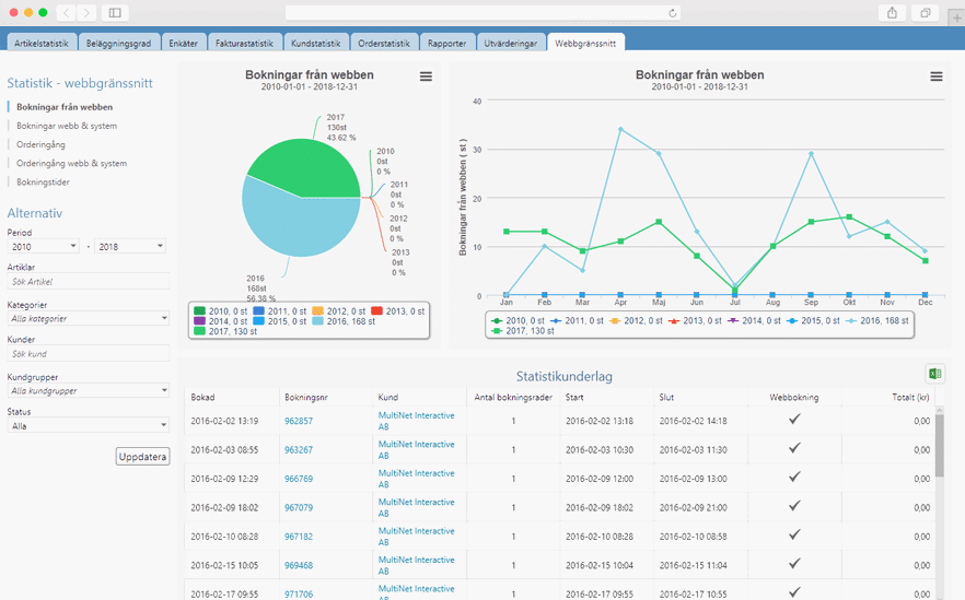 Nu får du äntligen full koll på alla dina kunder, bokningar, bekräftelser och fakturor. Vaktmästeriet och köket får den information de behöver via den webbaserade portalen eller färdiga rapport-dokument.